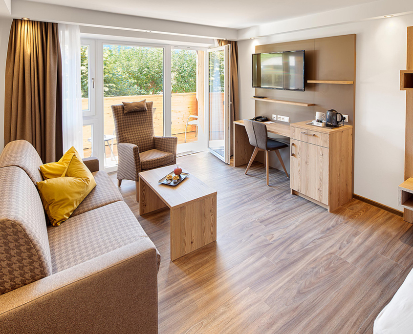 Wir bieten dir Urlaub für Körper und Geist: Alle Räume sind hell und luftig gestaltet, Wellnessoasen mit Regendusche, Badewanne, Infrarot-Kabine oder Privatsauna sowie Komfortbetten sorgen für pure Entspannung. Wir haben Zimmer speziell zugeschnitten auf die Bedürfnisse von Familien – und auch dein Hund ist bei uns herzlich willkommen.
